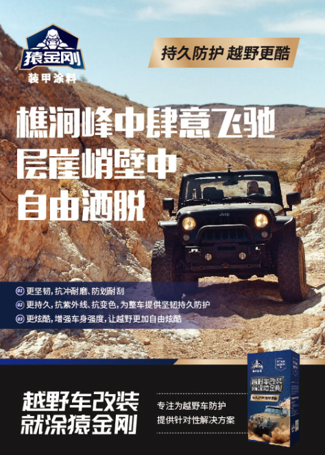 猿金刚优异的性能,可在汽车表面形成强悍防护涂层。可以提升车身强度300%,可抵挡5.56口径子弹产生的冲击能量。让车身能抵抗高强度冲击和持久耐刮擦,更加结实扛撞,拥有装甲车一般的刀枪不入。